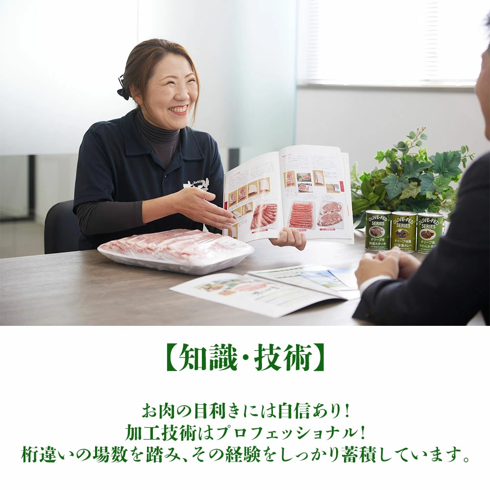 オリーブ牛(三豊市産)、玉葱(国産)、つなぎ(卵白(国産)、パン粉、粉末状植物性たん白)、牛脂、りんごピューレ、乳加工品、食塩、砂糖、コショウ/酸味料、香料、カロチノイド色素、(一部に乳成分・小麦・卵・牛肉・大豆・りんごを含む)