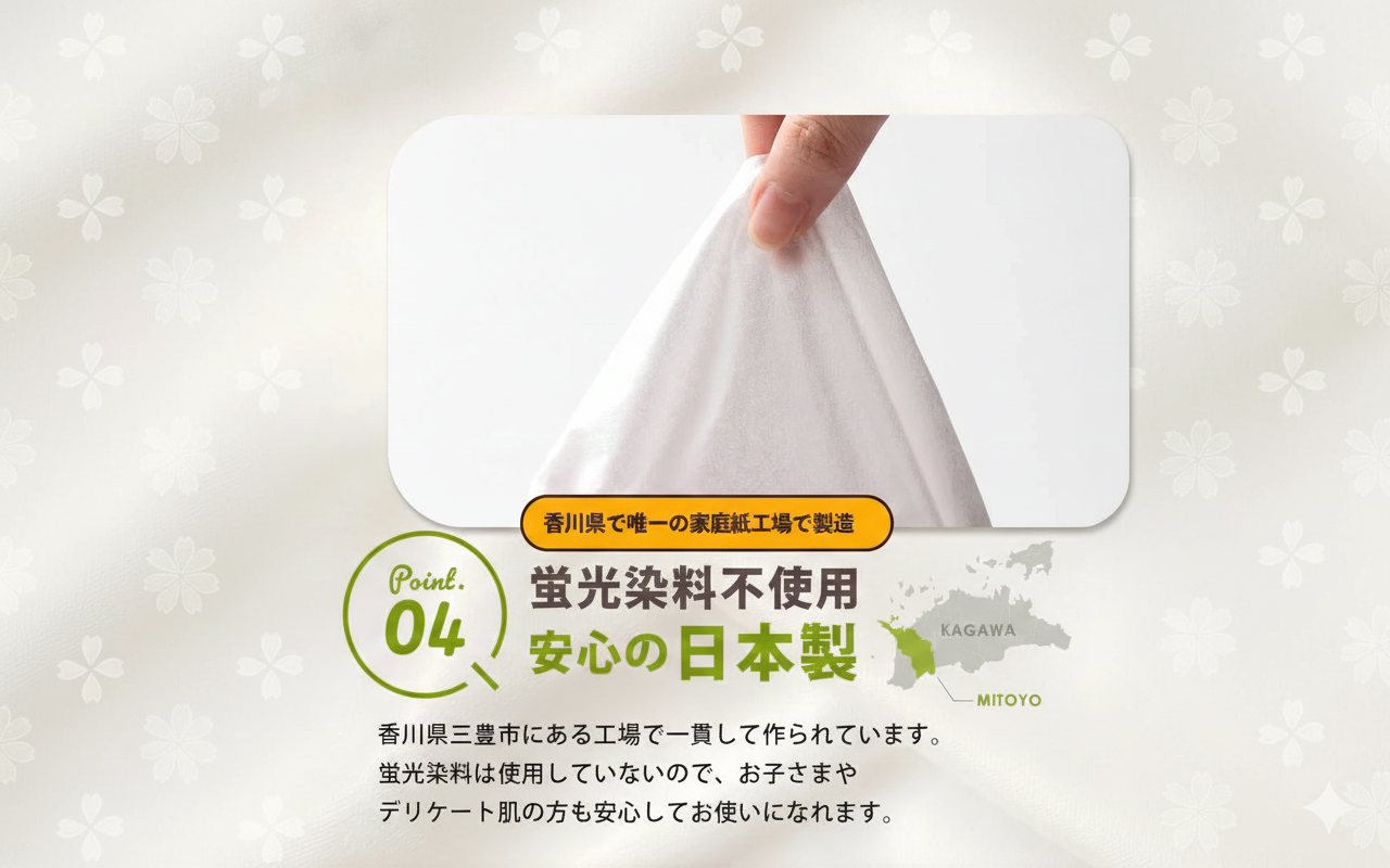 \毎日の生活に欠かせない日用品を、大容量でお届け。 三豊市から安心品質のティッシュペーパー。/