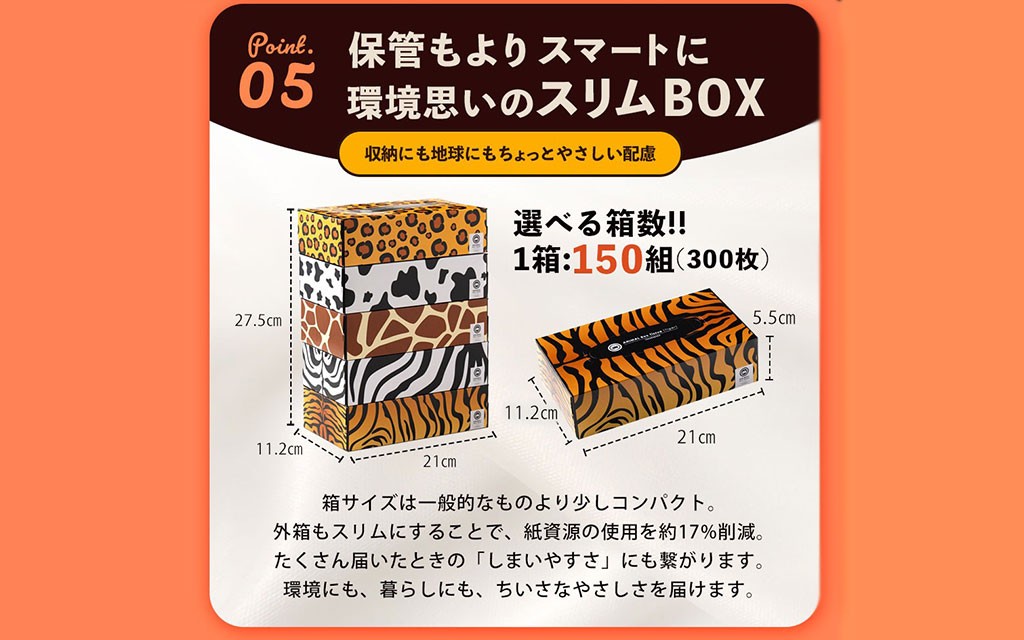 外箱もスリムにすることで、紙資源の仕様を約17%削減。