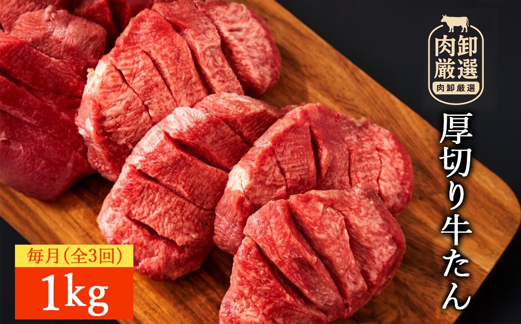 定期便 毎月 全3回 厚切り牛タン(7mm) 500g×2 [ 厚切りタン 厚切り牛タン タン 味付け牛タン 牛たん 牛肉 焼肉 焼肉用 塩タン タン塩 味付け牛タン 本格 贅沢ギフト 香川県 三豊市 ]
