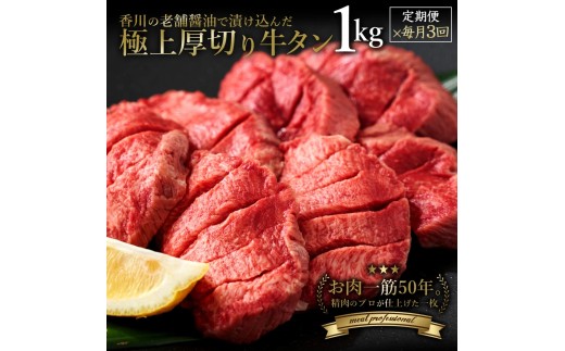 【ふるさと納税】毎月お届け3回 オリーブ牛 あんどう醤油の 旨タレ厚切り牛タン 1kg
