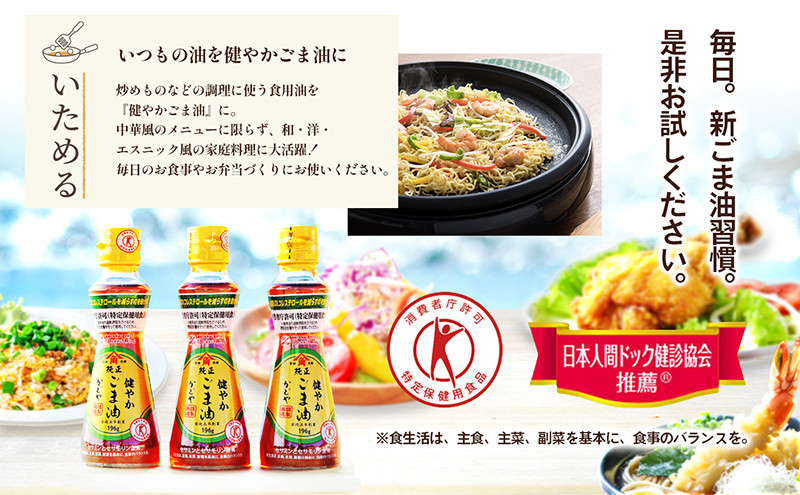 味と品質にこだわり、10年の歳月をかけて開発した『健やかごま油』は、ごま油のおいしさはそのままに、血清LDLコレステロールの低減をサポートするごま油で日本初の特定保健用食品です。