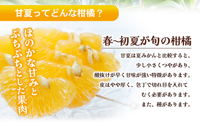 さわやかな香りとさっぱりした味わいの甘夏柑。酸っぱさの中にすっきりとした甘さが感じられ、ほのかに苦みが感じられます。