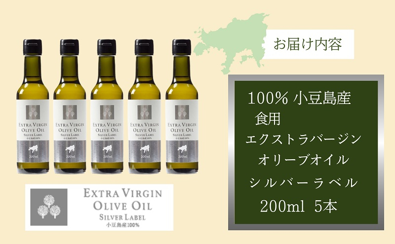 【 小豆島 】 小豆島産 食用 エクストラバージン オリーブオイル シルバーラベル 5本入 手摘み オリーブ オイル シルバーラベル 油 オリーブ油 食用油 調味料 ヘルシー 健康 香川 香川県 土庄 土庄町