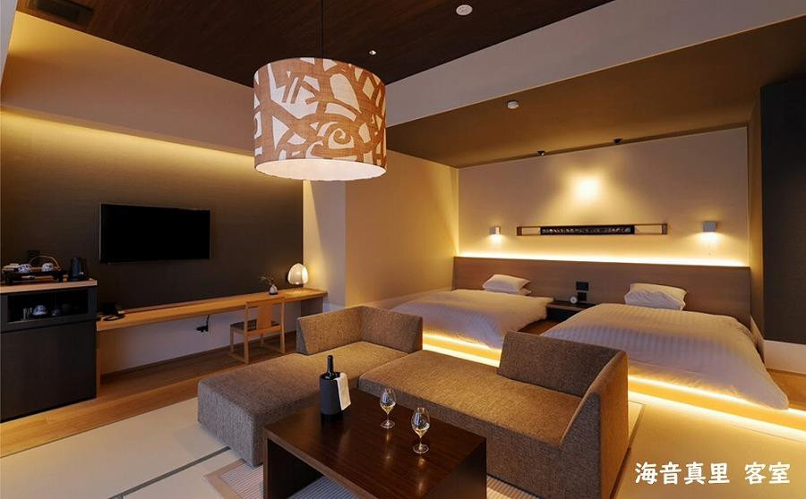 2019年にオープンした海音真里は、心地よい波の響きに包まれた全室オーシャンビュー。