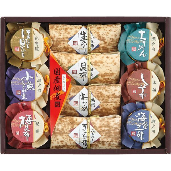 | 容量 | ・小豆島生のり100g ・日高昆布100g ・鳴門わかめ100g ・みちのくきゃら蕗100g ・北海道ほたて貝ひも60g ・瀬戸内ちりめん45g ・瀬戸内小魚しぐれ煮(小魚:瀬戸内産)40g ・土佐しょうが45g ・紀州梅昆布(梅:紀州産)80g ・瀬戸内海藻三昧90g |