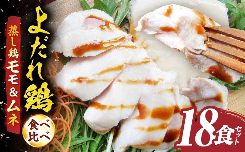 鶏 鶏もも 鶏ムネ 蒸し鶏 チキン 国産 ソース 三木町 よだれ鶏 食べ比べ 18食セット鶏モモ&ムネ ポン酢付き| 鶏 鶏もも 鶏ムネ 蒸し鶏 チキン 国産 ソース 濃厚 特製 旨味 特製ソース ジューシー 柑橘 香川県 三木町 おすすめ |_mk146-260