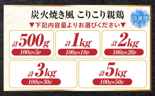 親鶏の旨みたっぷり!香ばしにんにく醤油味 【選べる内容量】炭火焼き風 こりこり 親鶏 (500g~5kg) |肉 鶏肉 親鶏 炭火焼き 冷凍 小分け 時短 時短調理 簡単 料理 こりこり 食感 おつまみ おかず 香川県 三木町 おすすめ |_mk146-269-sku