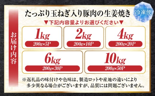 容量 | 《内容量をお選びください》 豚肉の生姜焼き ・200g×5P 計1kg ・200g×10P 計2kg ・200g×20P 計4kg ・200g×30P 計6kg ・200g×50P 計10kg |