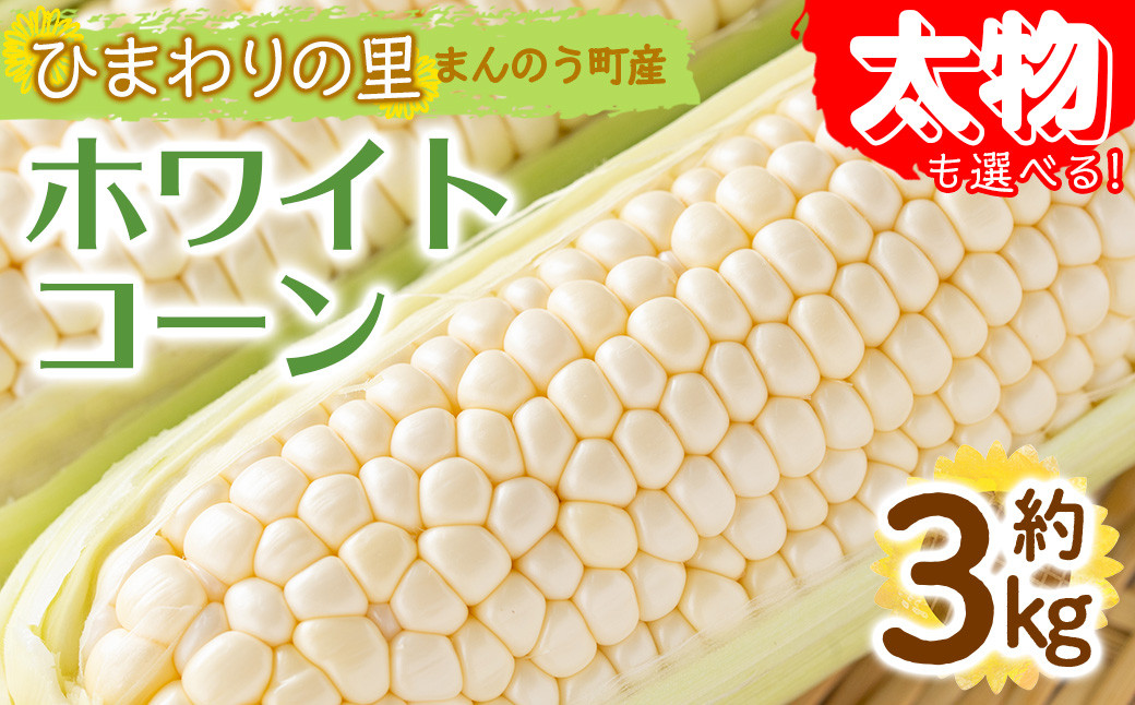 | 容量 | ・ホワイトコーン 約3kg(通常品) ・ホワイトコーン 約3kg(太物 2Lサイズ以上) |
