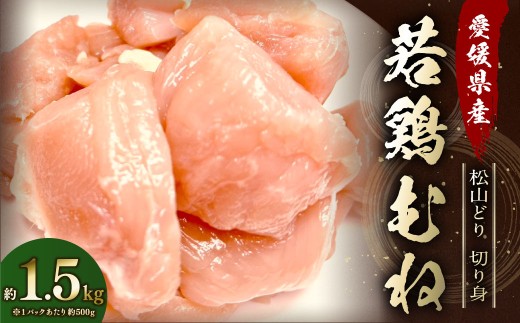 【愛媛県産 松山どり】 若鶏ムネ 切り身 500gずつ小分け 約1.5k…