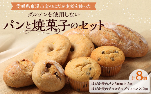 はだか麦は大麦の一種で、ビタミン、ミネラルが多く含まれています。 愛媛県 東温市産のはだか麦粉を使った グルテンを使用しない パンと焼菓子のセット 計8個 プレーン レーズン オレンジピール クリームチーズ ベーグル チョコチップ マフィン パン 焼菓子 菓子 スイーツ デザート 朝食 昼食 おやつ (511)