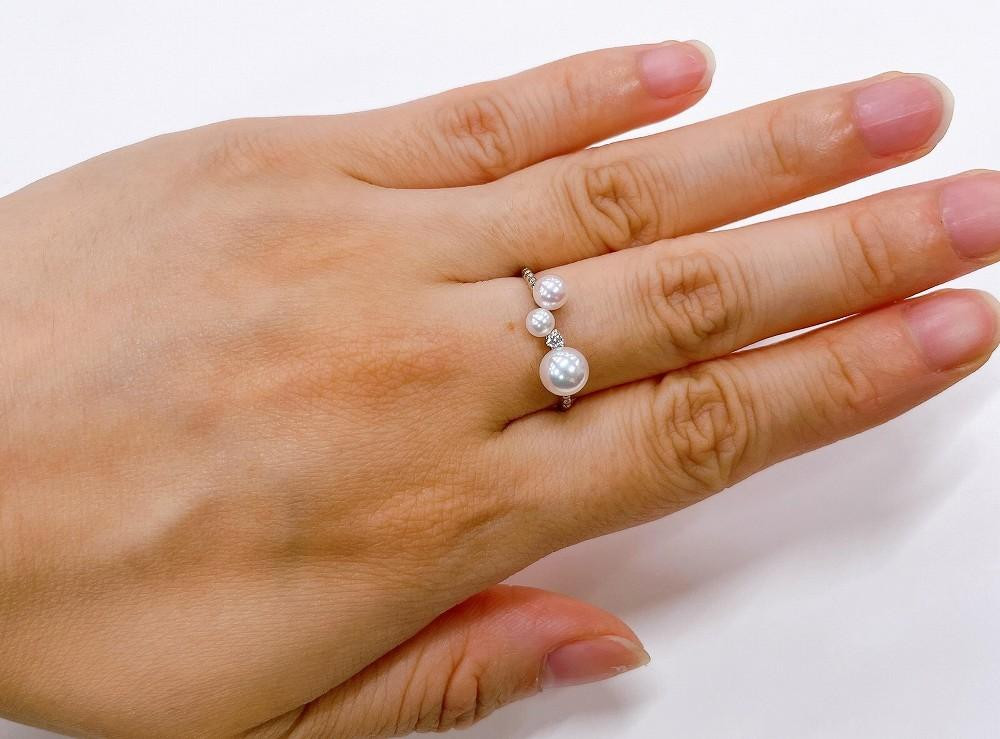 | 容量 | パール:5.5mm、4.0mm、3.3mm ダイヤ:一石(0.03ct) 金種:Pt900(1.7g)/K18YG(1.2g) 幅:最大(5.8mm)/最小(1.2mm) サイズ:イメージ画像は♯11号となります。 *適応サイズは♯8~♯18号。 ご希望のリングサイズをお知らせください。 |
