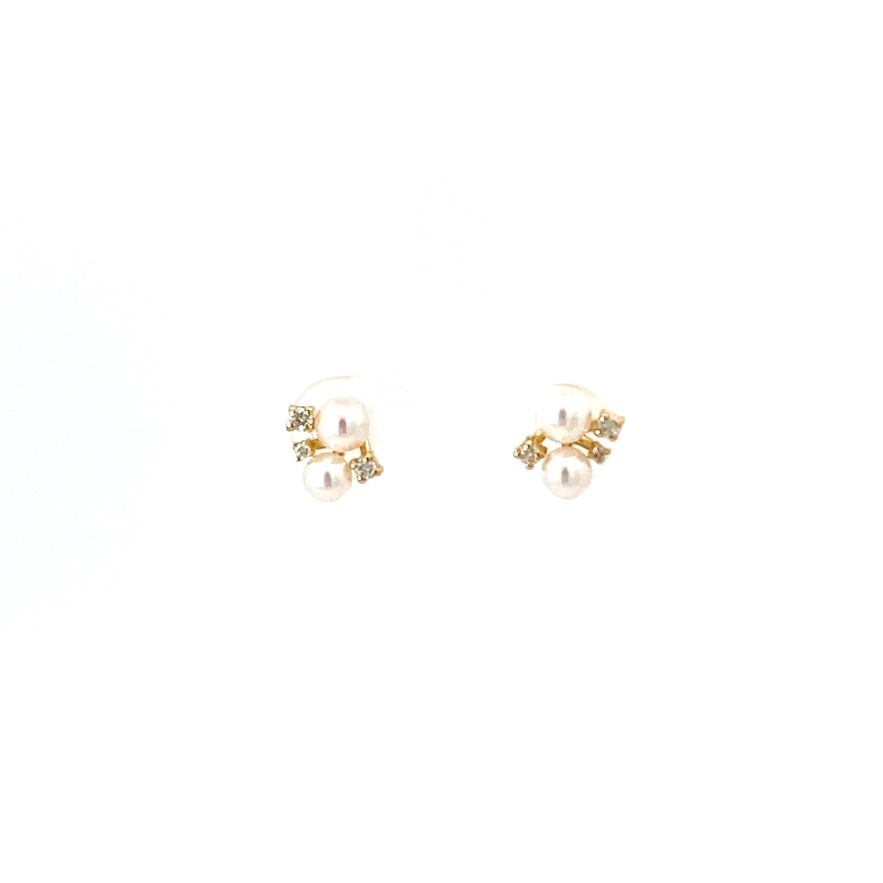 18金 イエローゴールドをベースとして、アコヤベビーパールとダイヤでキラキラ可愛いデザインのピアスです。