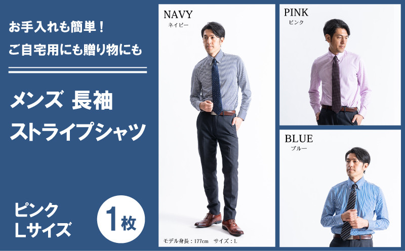 チョイス限定 選べるカラーとサイズ 普段着でもお贈り物にも最適 メンズ 長袖 ストライプシャツ < L > < ピンク > メンズ シャツ 長袖 シャツ イージーケア ファッション 冬服 【SNKN23-042】