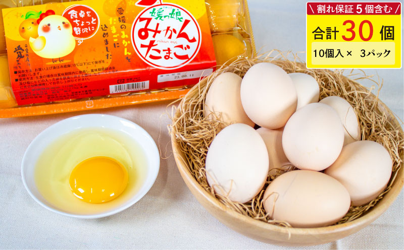 愛媛から新鮮な卵をお届け! 【発送月指定可】媛っ娘 みかんたまご 30個 ※割れ保証5個含む 卵 たまご タマゴ 玉子 卵料理 卵かけごはん TKG エッグ egg 松山 愛媛県