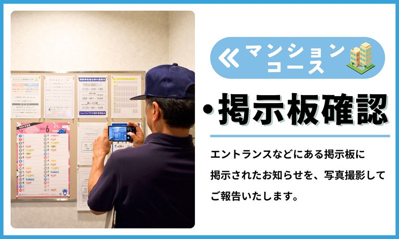 エントランスなどにある掲示板に掲示されたお知らせを、写真撮影をしてご報告いたします。