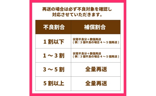 糖度も高いため、運送中の揺れや急激な温度変化等により傷みが生じてしまう事がございます。