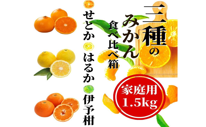 果汁の詰まったブランドみかんを詰合せ! 【三種のみかん食べ比べ箱】先行予約 <2026年2月から順次発送> せとか・はるか・伊予柑 約1.5kg 家庭用 | 愛媛 みかん 先行予約 蜜柑 柑橘 果物 くだもの フルーツ お取り寄せ グルメ 期間限定 数量限定 人気 おすすめ 愛媛県 松山市