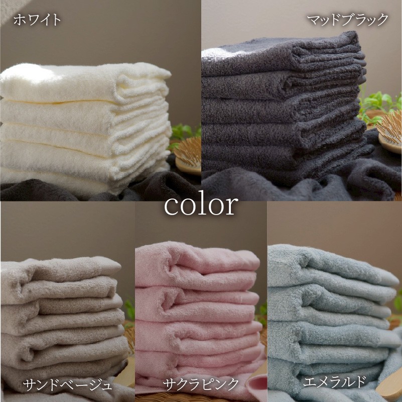特別ではない日に、特別な肌ざわりを 【今治タオル】4枚セット フェイスタオル2枚・バスタオル2枚 椿セレクト スーピマ マッドブラック/エメラルド/サクラピンク/サンドベージュ/ホワイト | 今治タオル たおる towel 愛媛県産 松山市 日本製 普段使い 肌ざわり 吸水性 乾きやすい ふんわり 敏感肌 新生活 愛媛県 松山市 織肌工房株式会社