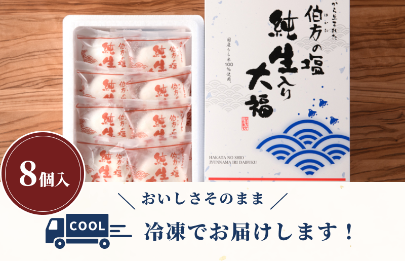SNS等で話題の、ほんのり塩味のクリーム大福が登場! 【SNSで話題】【TVで紹介】 伯方の塩 純生入り大福 8個入 1箱 お取り寄せ グルメ スイーツ ご当地【VA00700SET1】
