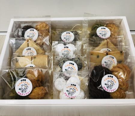 | 容量 | プレーン・ココア(約40g)プレーン・抹茶(約38g)チョコチップクッキー(約40g)キャラメルナッツクッキー(約30g)スノーボール黒ゴマ(約20g)スノーボール今治レモン(約20g)×各2袋 |