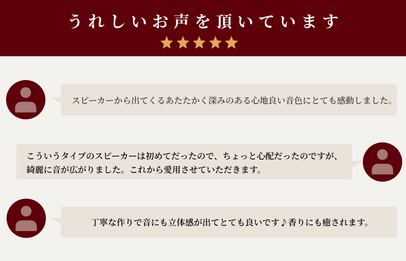 台の部品は、音の反響を考えたデザインで、1品1品削り出しておりますので密閉性が高く、高音から低音まで幅広く音を増幅させることができます。