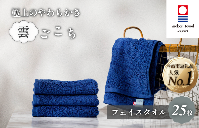 タオル部門人気No1!ふんわりと雲のように織り上げました。 (今治タオルブランド認定)雲ごこち フェイスタオル 25枚セット(コン)【IA05010FT25NV】今治タオル フェイスタオル