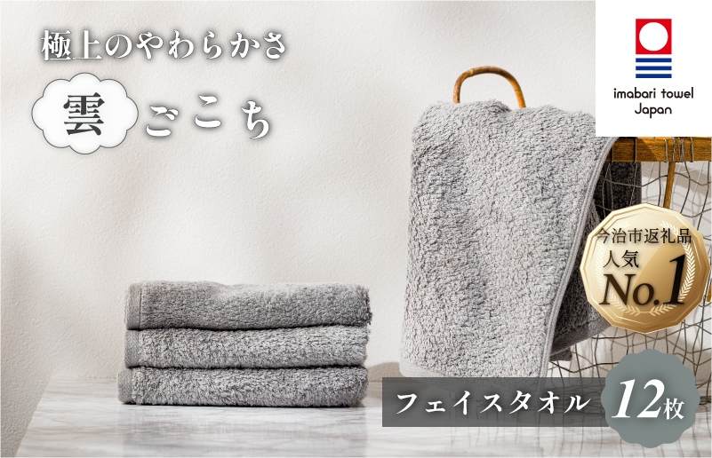 タオル部門人気No1!ふんわりと雲のように織り上げました。 (今治タオルブランド認定)雲ごこち フェイスタオル 12枚セット(グレー)【IA05010FT12GY】今治タオル フェイスタオル