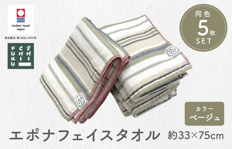 オーガニックコットンを使用した、軽量で乾きやすいタオル。 (今治タオルブランド認定品) エポナ フェイスタオル 5枚セット ベージュ [I002740FT5BE]