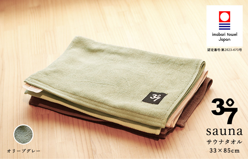 敷けて拭ける万能サイズ、手軽に使えて持ち運びも便利。 (今治タオルブランド認定品)BATHLIER 37 サウナタオル(33×85cm)2枚セット オリーブグレー【I003370FT2OGY】