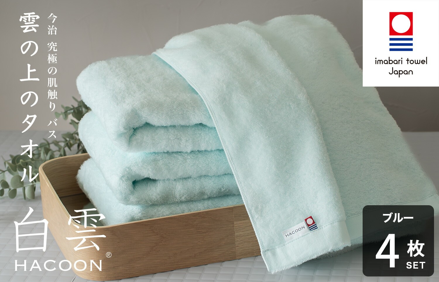 雲のようにふわふわとやわらかな肌ざわりの今治タオルです。 (今治タオルブランド認定)白雲 (HACOON) バスタオル 4枚セット(ブルー)【I000610BT4B】