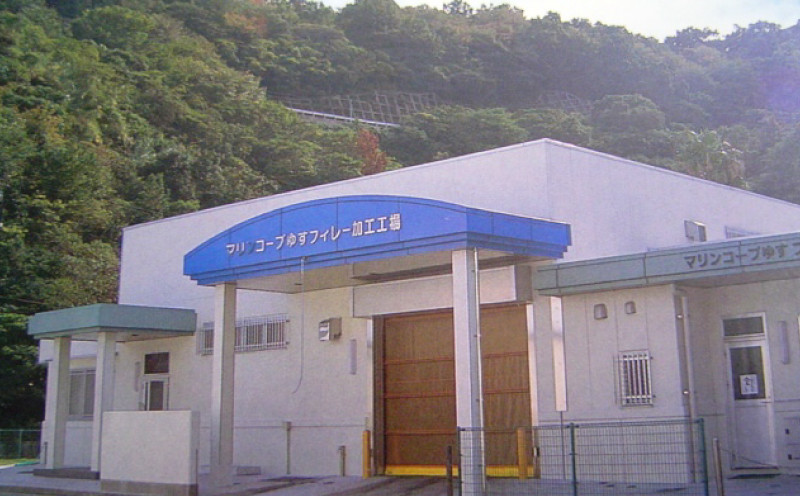 遊子で育てられた魚は浜揚げした後、魚の鮮度を保ちながら、隣接するマリンコープゆす加工場へ運び込まれます。