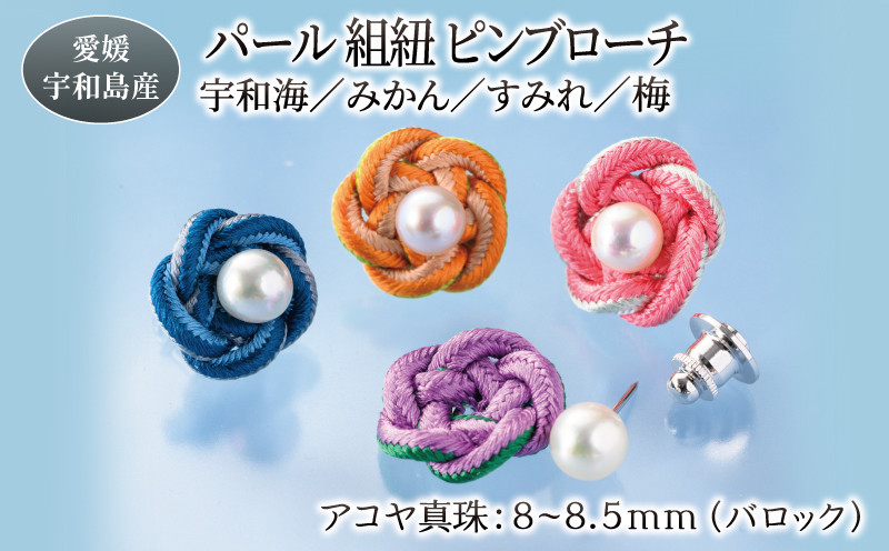 パール 組紐 ピンブローチ 宇和海 みかん 梅 すみれ 選択可 8.0-8.5mm 暁工房 ブローチ 真珠 アクセサリー アコヤ真珠 本真珠 ファッション フォーマル 冠婚葬祭 慶事 結婚式 卒業式 入学式 お祝い ギフト 贈り物 人気 特産品 国産 愛媛 宇和島