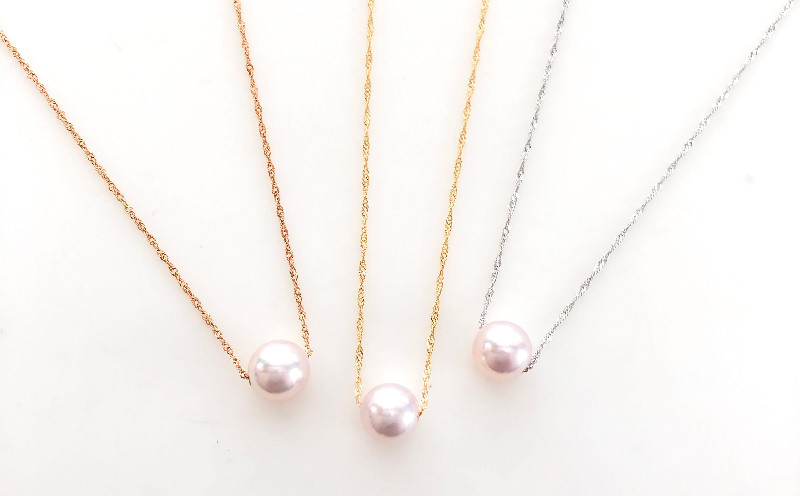 ほのかなピンク色の真珠にあわせるチェーンは3色からお選びいただけます。