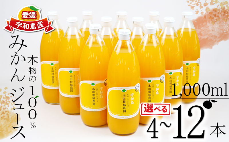 みかんジュース 本物の100%みかんジュース 選べる 内容量 1,000ml × 4本~12本 木田柑橘農園 南柑20号 温州みかん 温州蜜柑 みかん mikan ストレート オレンジ 果汁100% ストレートジュース 果物 くだもの フルーツ ギフト プレゼント 国産 愛媛 宇和島 H025-185001~003