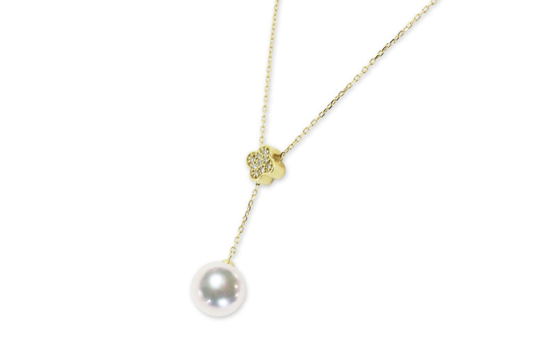 テリ・巻きともに優れたアコヤ真珠のペンダントです。モチーフ部分と留め具部分がスライド式アジャスターとなっており、お洋服やその日の気分に合わせて長さ調整が可能です。