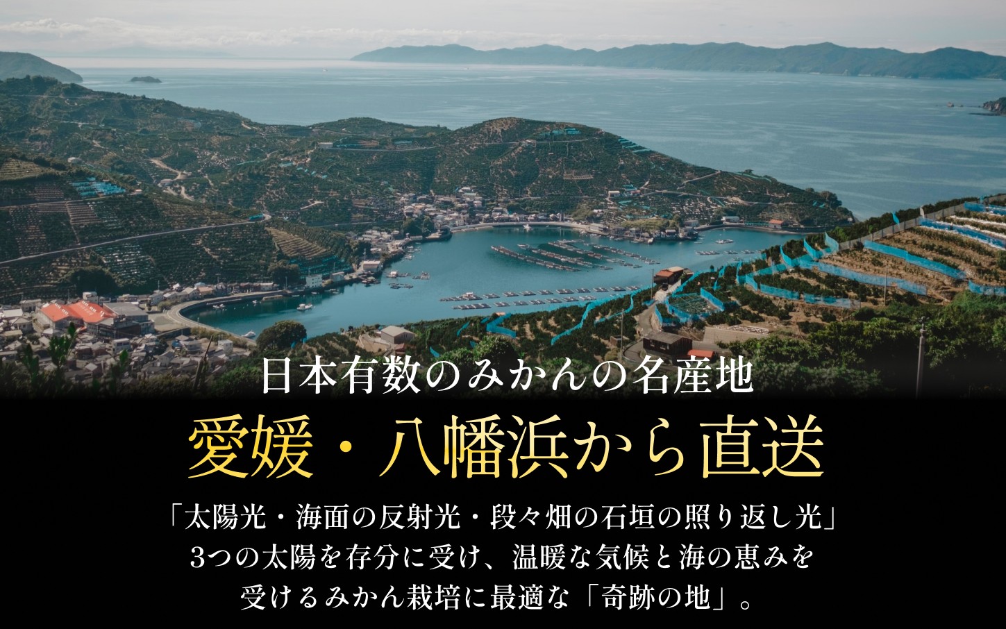 新口農園がある「愛媛県八幡浜市川上町」は、日本でも有数のみかんの名産地。すり鉢状の地形が太陽の光をたっぷり集め、宇和海からの潮風がみかんを健やかに育てます。100年以上にわたり、自然と共に歩んできた歴史が、この土地ならではの味を作り上げています。