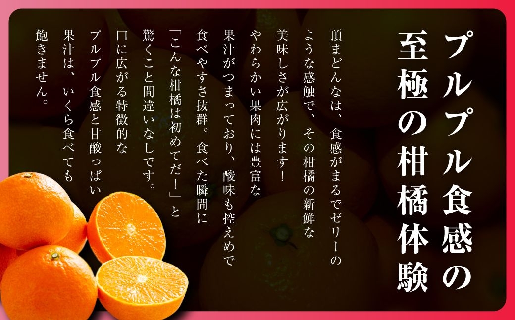 頂まどんなの特徴は、何と言ってもそのゼリーのようなプルプル食感です!やわらかい果肉には果汁たっぷり、酸味も少なくて食べやすく、『こんな柑橘は初めてだ!』と驚かれる方もいます。