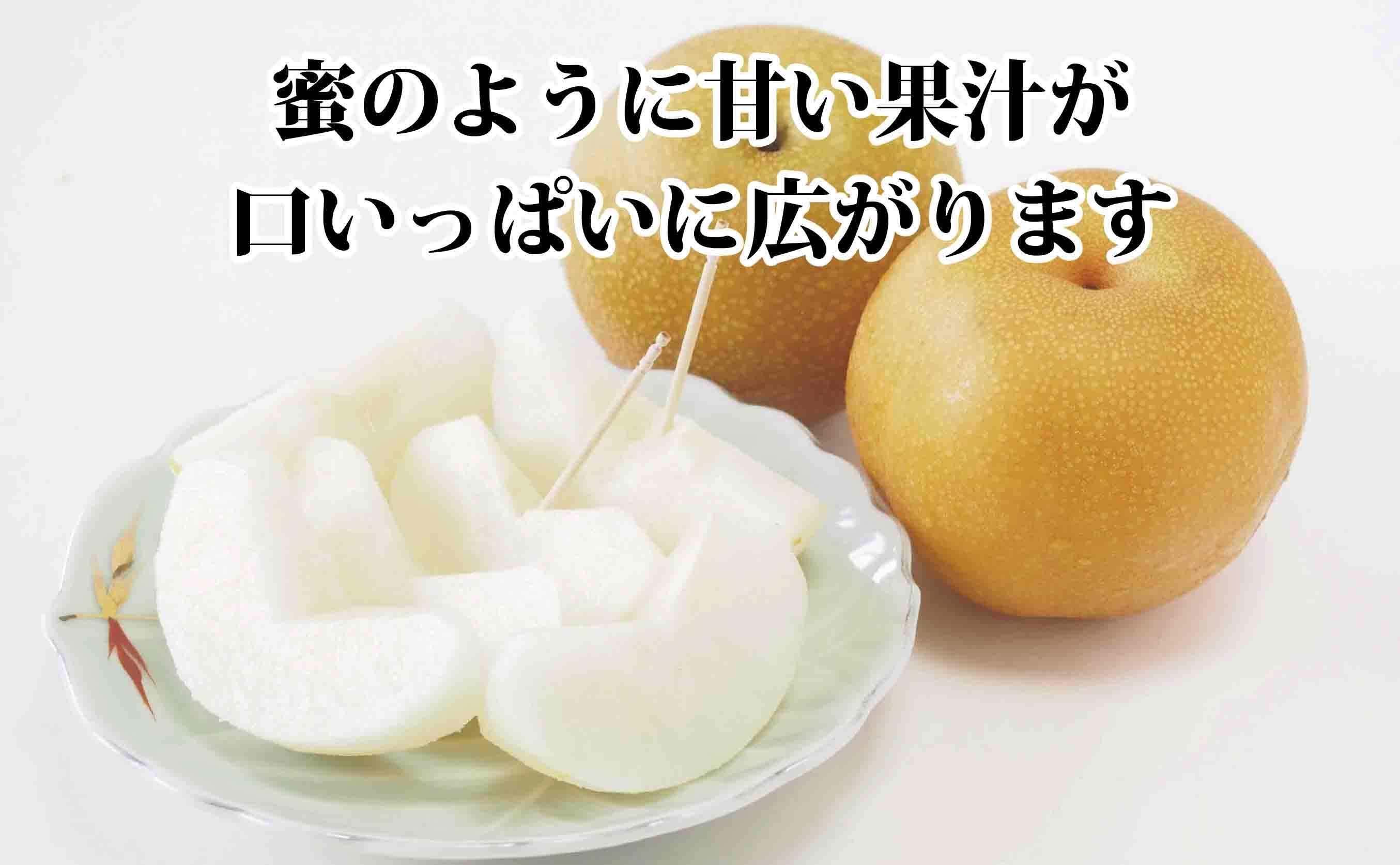 甘味が強くてやさしい酸味があり、果肉は、果汁をたっぷりと含んでおり、梨特有のシャリシャリ感もあり食味も良好です。