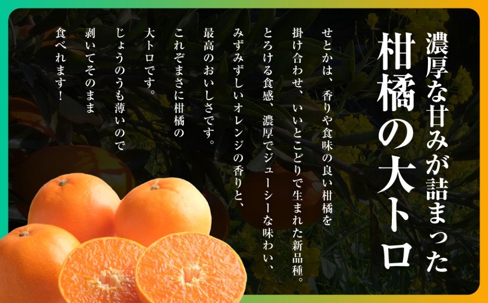 ひとくち頬張れば、とろける甘さと溢れ出す果汁。まるでスイーツのような濃厚な味わいの せとか は、まさに「柑橘の大トロ」!