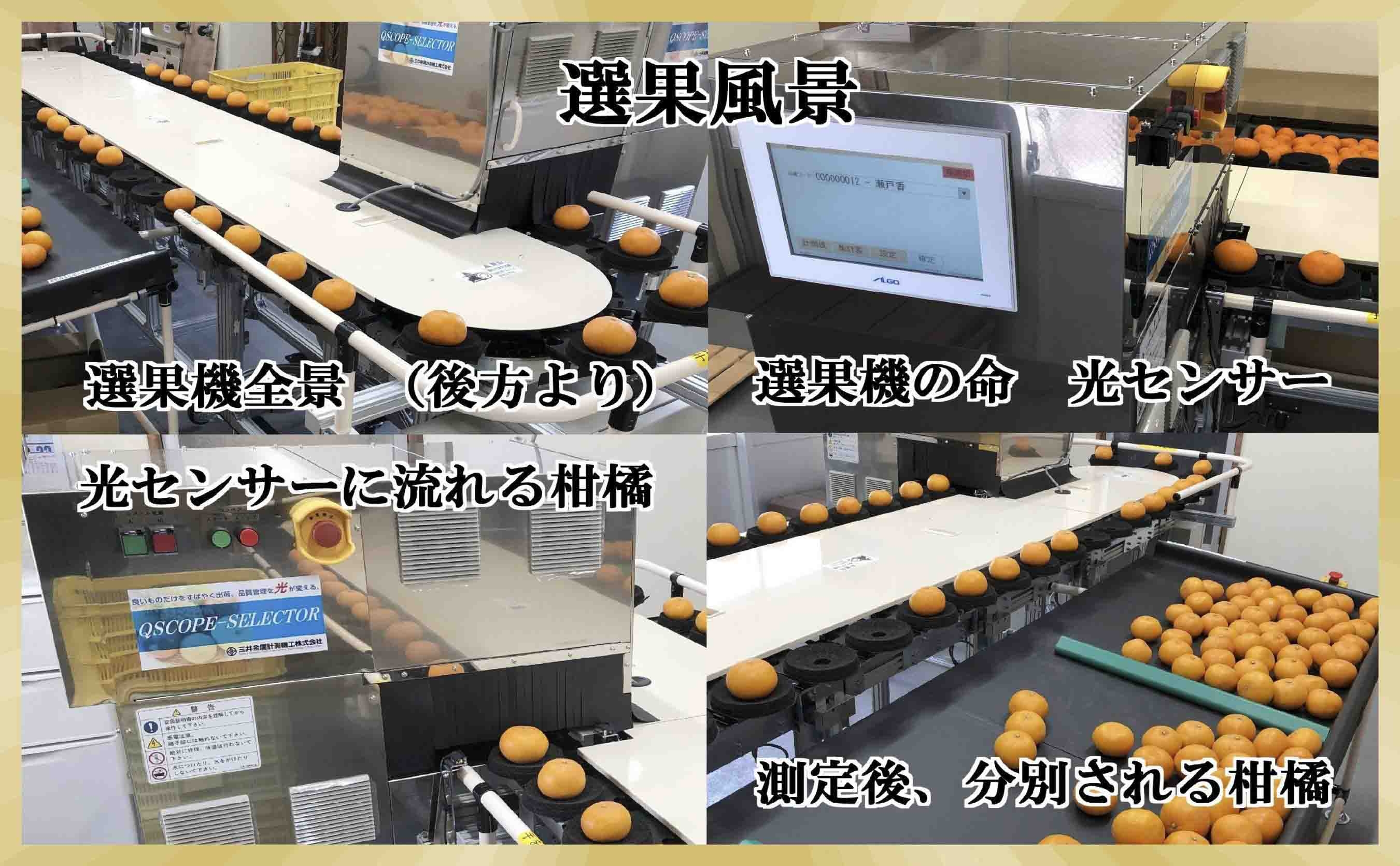 光センサーで一玉一玉糖度、酸度、中身の状態をチェックし、おいしい時期の食べ頃になった果実をお届けいたします。