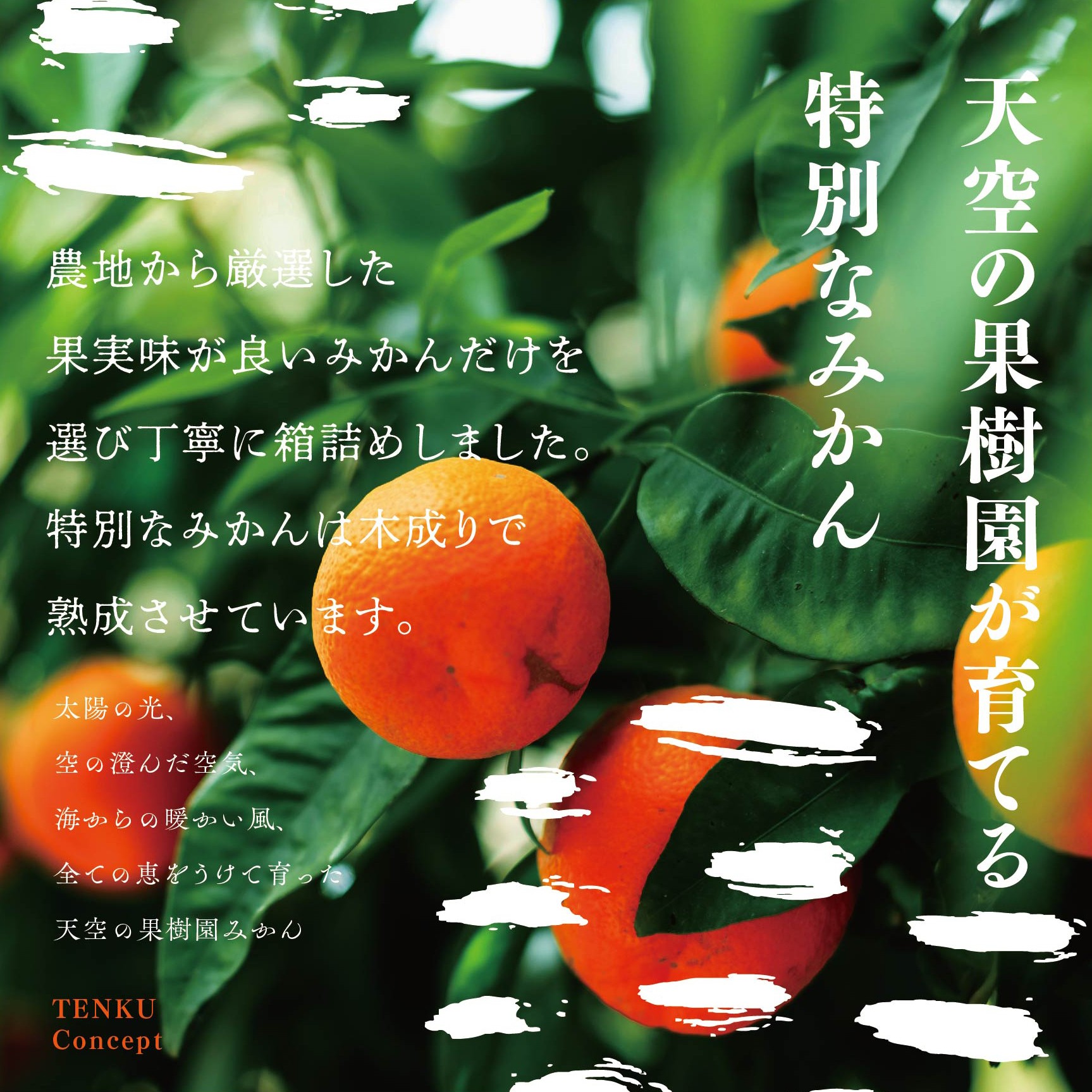 先代から受け継がれた柑橘の樹は、市街からはるかとおい場所、生い茂る森を超えた先の太陽に近い農園にあります。空から降り注ぐ太陽をたっぷりと浴び、特有の寒暖差から生まれる濃厚な甘みとコク。空に近い、特別な立地でないと収穫出来ない、美味しい柑橘を天空の果樹園よりお届けします。