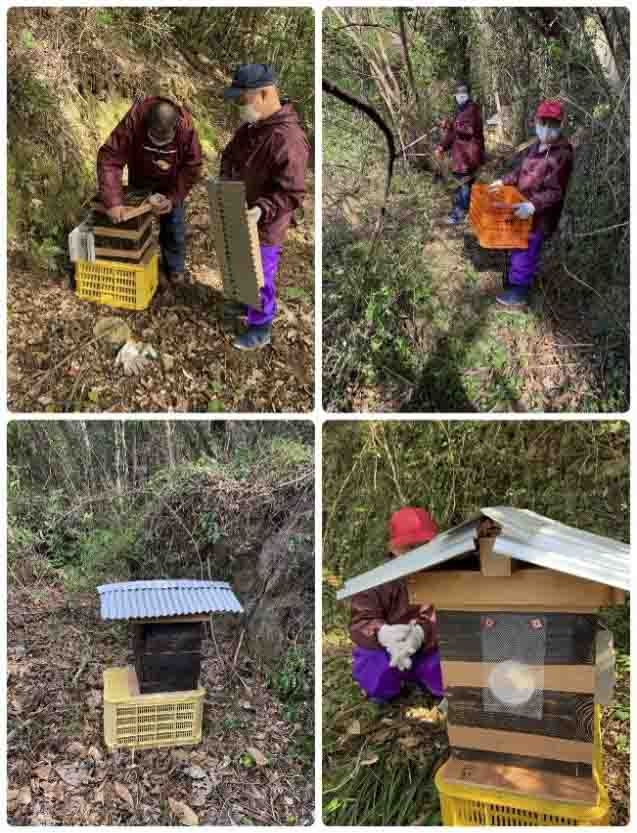 柑橘の名産地、愛媛県八幡浜市のミカン畑に囲まれた場所で養蜂されている希少な日本ミツバチから採密された百花蜜になります。自然な風味と栄養価を損なわないように非加熱処理にこだわっており、ミツバチが作り出したそのままを瓶詰めされた蜂蜜です。(瓶は煮沸消毒殺菌処理しています。)巣からそのまま蜜を落とす「垂れ蜜」という方法でゆっくり時間をかけて採蜜しています。一般的なハチミツに比べ風味も豊かで、香り高く濃厚な味わいとなっています。