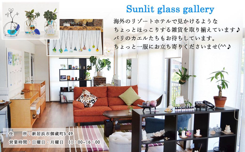 Sunlit(サンリット)には『光に照らされた・陽だまりの』という意味があるのですが、光に照らされたガラスはとってもきれいで、気持ちがほっと和むような温もりがあります