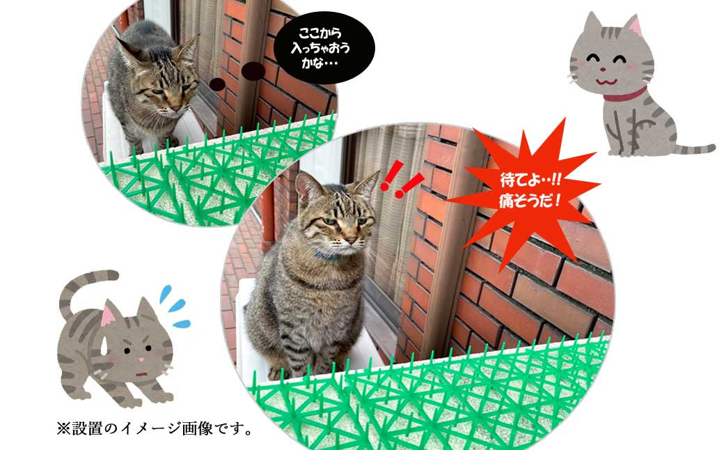 鋭利なトゲではないので、「ザ.ストップネコ」を踏んだ猫が怪我をしてしまうことはありません。猫は、「ザ.ストップネコ」がある部分を「踏んではいけないところ」と認識するため、近づかなくなります。