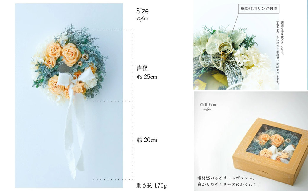 名称:「ヒノキノハナ」とプリザーブドフラワーのナチュラルリース