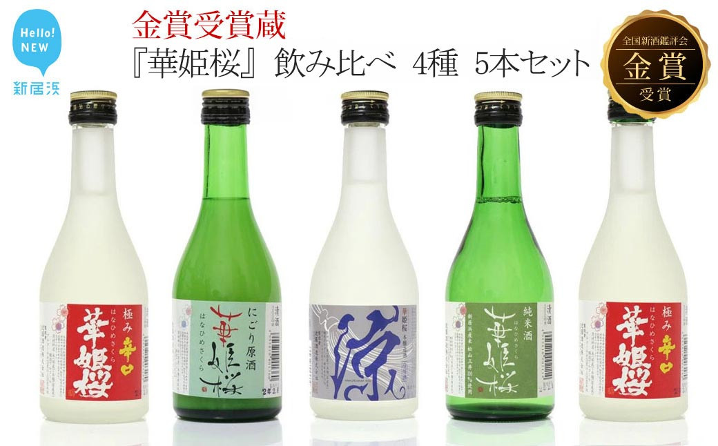 国新酒鑑評会 金賞受賞の華姫桜 華姫桜の日本酒飲み比べセット 地酒 日本酒 飲み比べ 4種 300ml × 5本セット 金賞受賞蔵『華姫桜』 清酒 純米酒【愛媛 近藤酒造】 ギフト プレゼントに最適