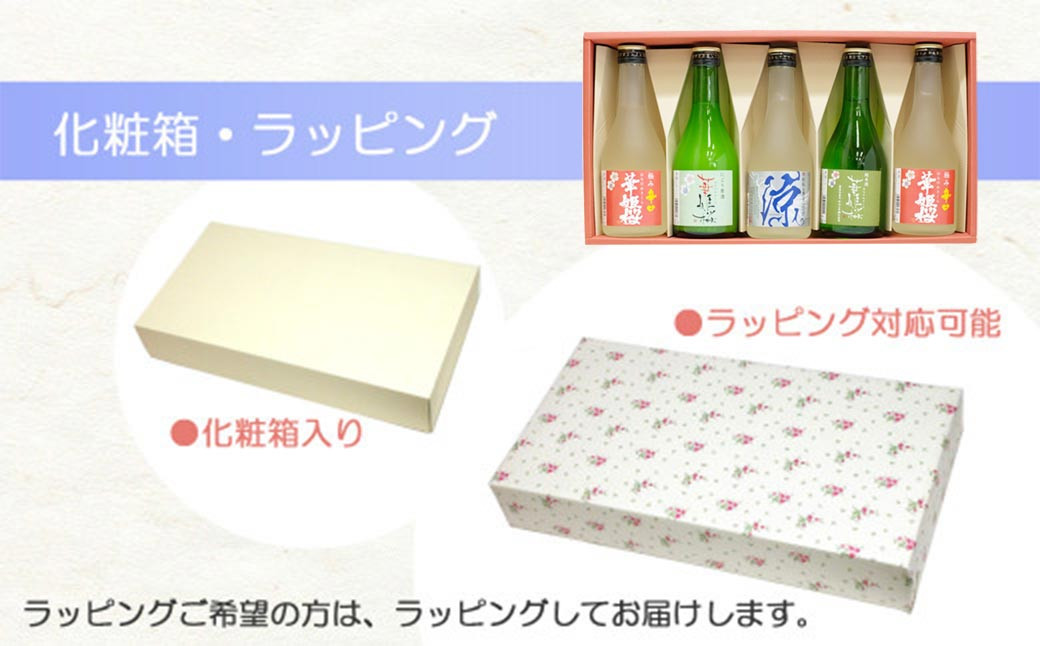 | 容量 | にごり原酒 300ml・涼 300ml・純米 300ml 各1本 極み辛口 300ml ×2本 |