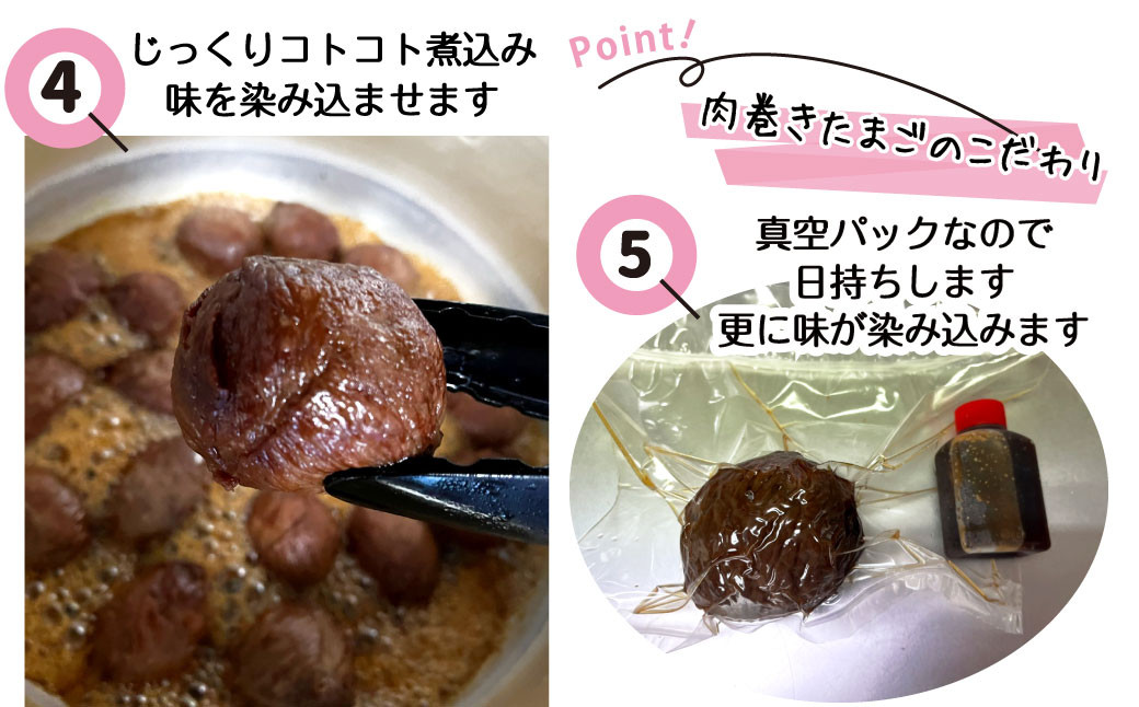 愛媛の農家さんが真心込めて育てた伊予牛で、ゆでたまごを巻いて、一つ一つ丁寧に作っています。